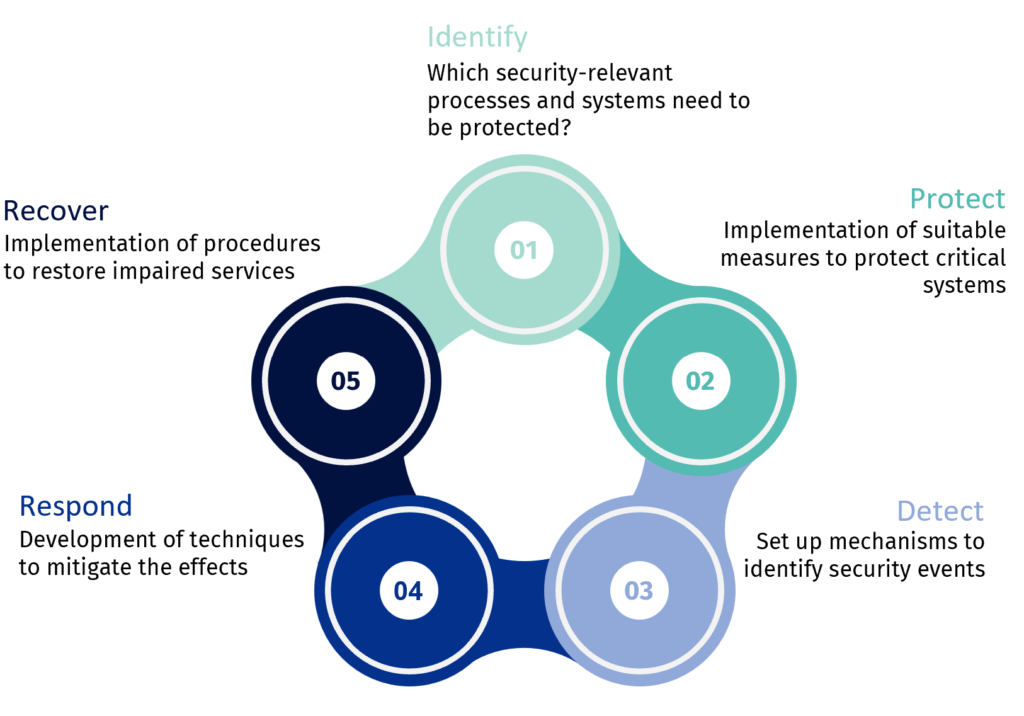 CyFort supports you in implementing the five steps of the cybercycle and thus creating a robust security concept that optimally prepares your organization for threats and ensures rapid responsiveness.